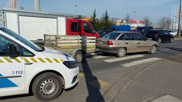 A László utcán két autós ütközött, a helyszínen rendőrök állapították meg a felelősség kérdését, melyhez a térfigyelő kamera felvételeit is használták.