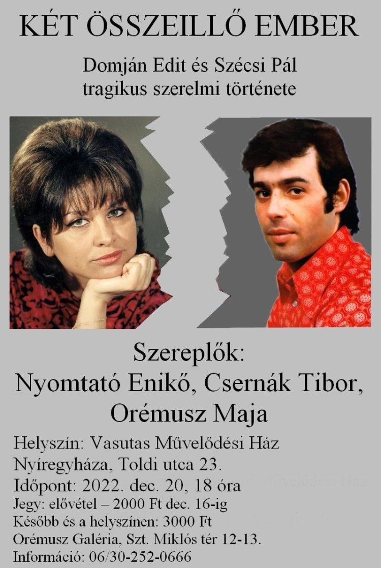 Hogy mi vezetett tragédiájukhoz, azt boncolgatja e műsor sok zenével, slágerrel december 20-án 18 órától a Vasutas Művelődési Ház nagytermében.