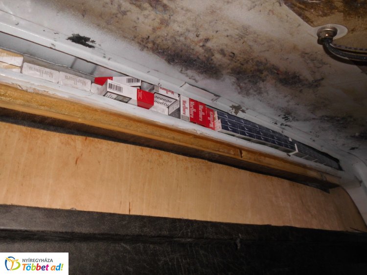 A pénzügyőrök a tetőlemezt megbontva cigarettacsempészetre házilag kialakított rejtekhelyet találtak. A kisbusz tetőszerkezete alatt 1 500 doboz, kétmillió forint értékű adózatlan dohány lapult.