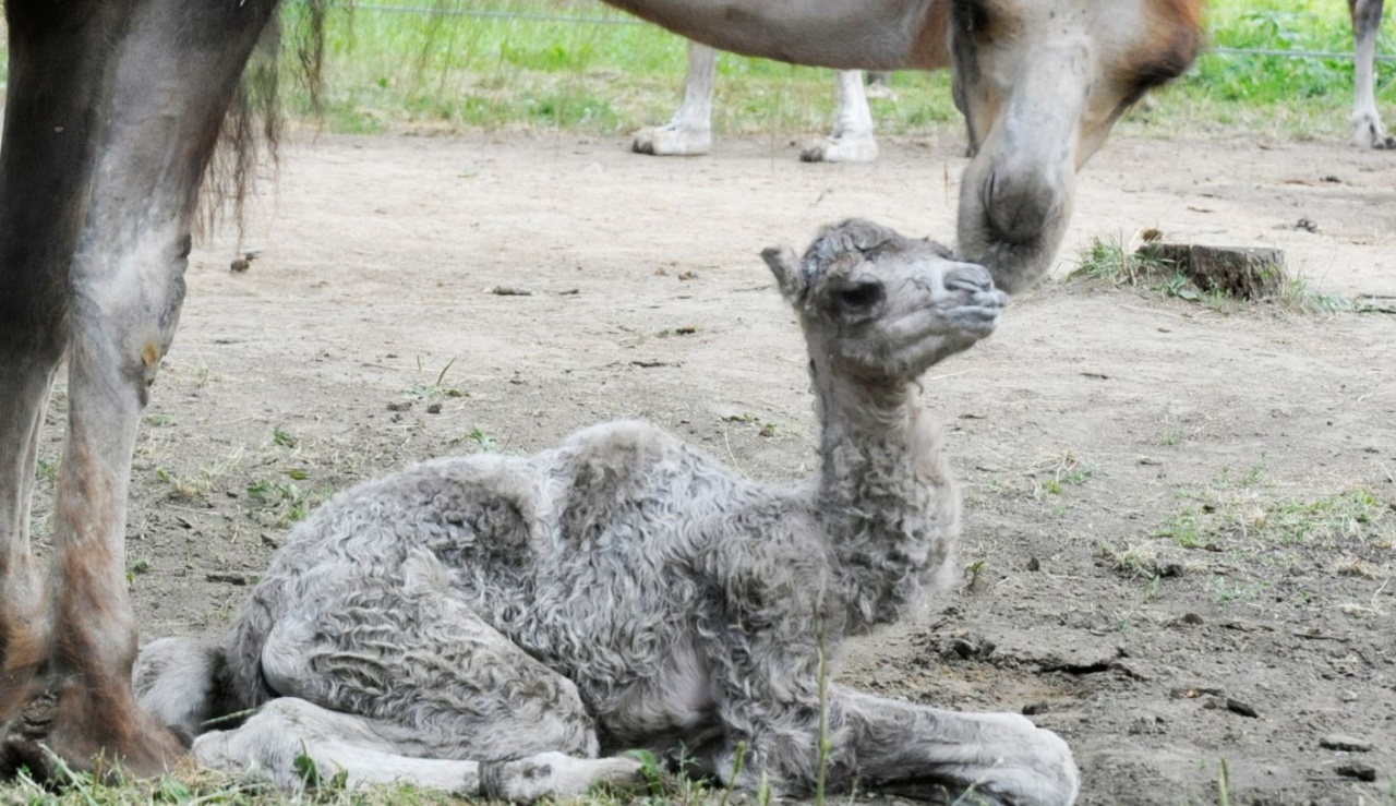 A jelenleg kétnapos állat ideje nagy részét anyja mellett tölti, de már ismerkedik a külvilággal és a csapat többi tagjával is. A kb. 30 kilogrammos tevelány hosszú, vékony lábaival és aprócska púpjaival jóval elmarad a felnőttek méretétől. Ha megnő, testtömege elérheti majd az 500 kilogrammot is.
