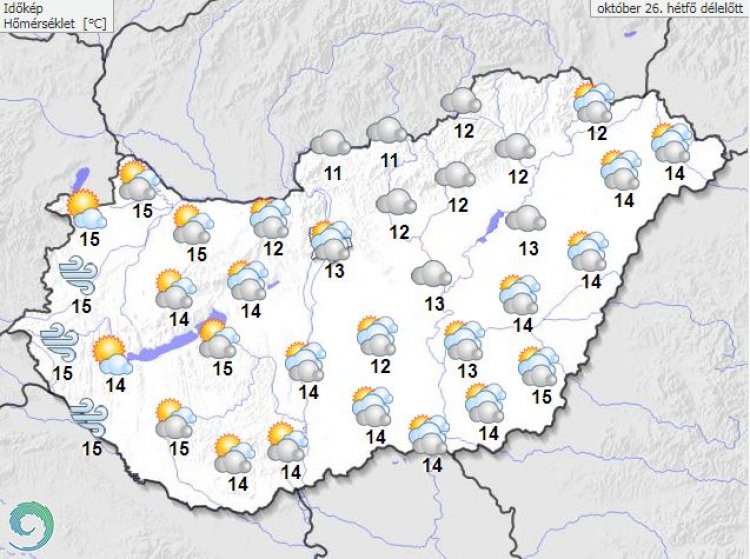 A legmagasabb nappali hőmérséklet többnyire 16 és 20 fok között várható, de a tartósan borult tájakon csupán 13, 15 fok lesz. Késő estére 8 és 15 fok közé hűl le a levegő.