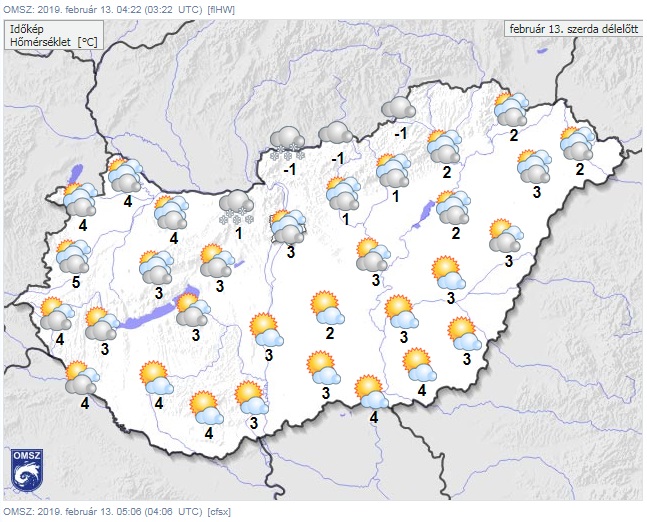 A legmagasabb nappali hőmérséklet 3 és 8 fok közt várható. Késő estére 0, +5 fok közé hűl le a levegő – írták.