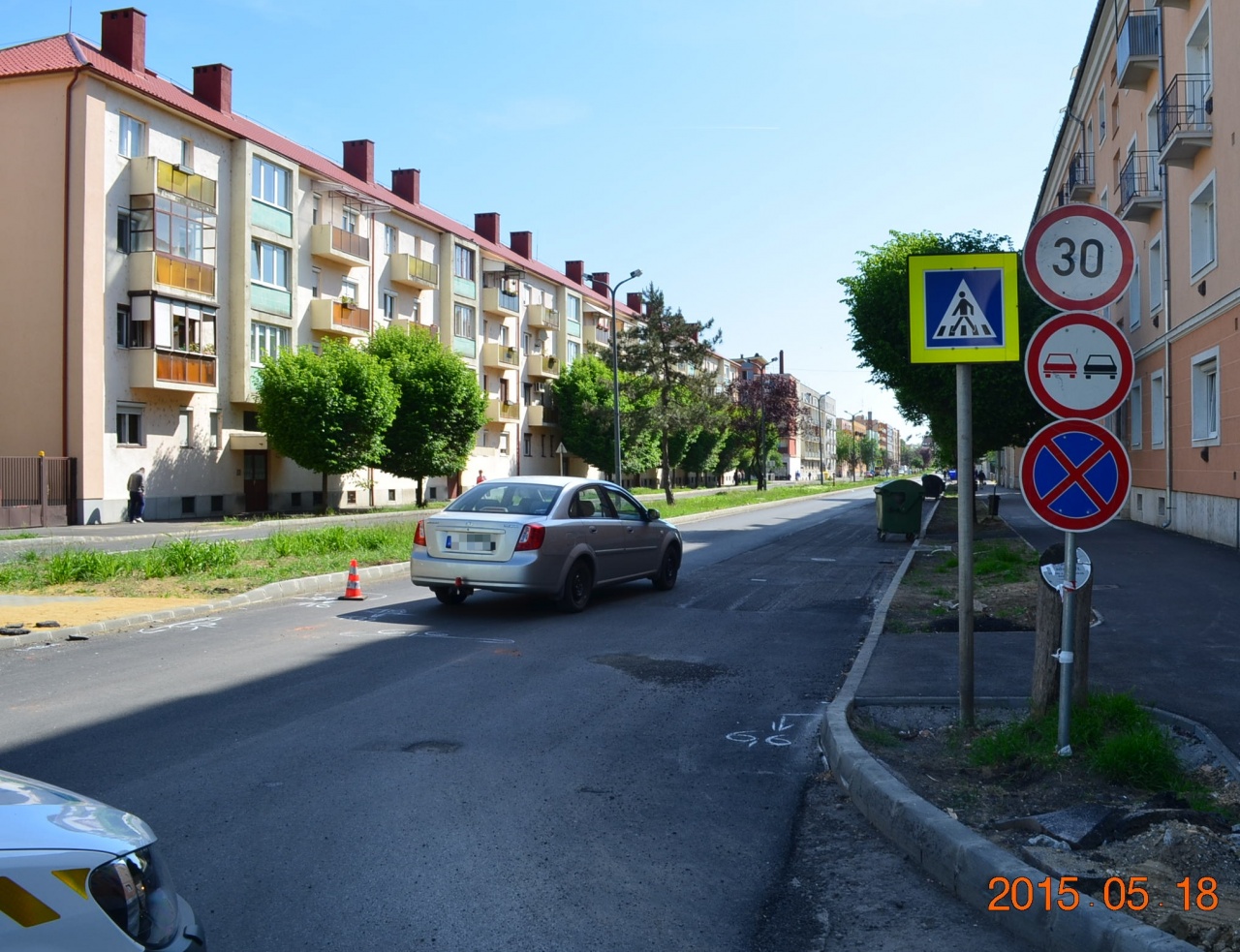Nyíregyházán, az Arany János utcán táblával jelölt, de az útfelújítás miatt felfestés nélküli kijelölt gyalogos-átkelőhelyen gázolt el gyalogost egy személygépkocsi 2015. május 18-án 8 óra 55 perc körüli időben. Az elütött nőt a mentők súlyos sérüléssel vitték kórházba. A Nyíregyházi Rendőrkapitányság közúti baleset okozása vétség elkövetése miatt 15010/2853/2015. bűnügyi számon folytat eljárást.