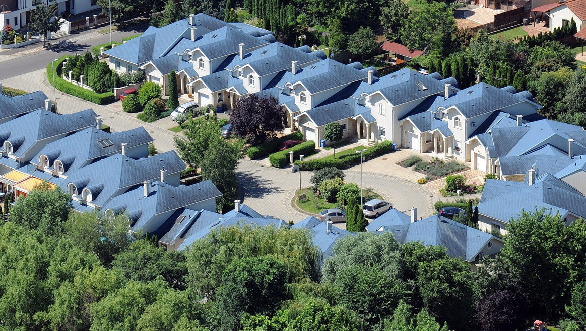 A debreceni Liget lakópark kék tetejű házainak látképe – képünk illusztráció (MTVA Fotó: Oláh Tibor)