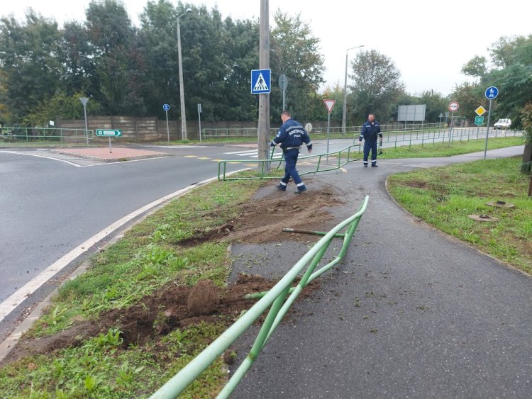 Egy védőkorlátnak csapódott egy személygépkocsi, miután nem tudta követni a körforgalom ívét a 38-as főút és a Szélsőbokori út körforgalmában szombaton.