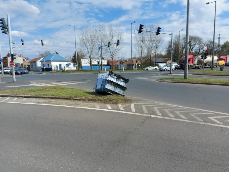 Kiesett egy haszonjármű rakománya a Debreceni út – Móricz Zsigmond utcánál.