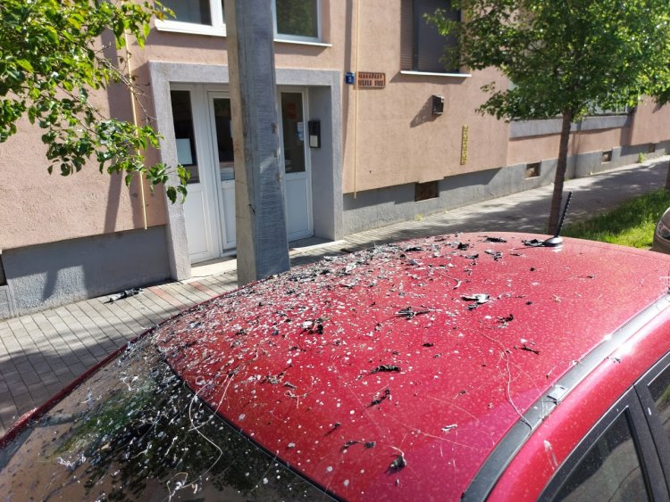Kigyulladt egy villanyoszlop, a búra és az égő ráesett egy autóra – Jelentős az anyagi kár