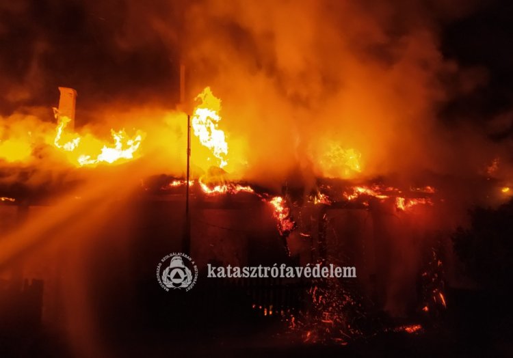 Kigyulladt és teljes terjedelmében égett egy nádfedeles lakóház tetőszerkezete
