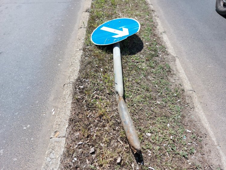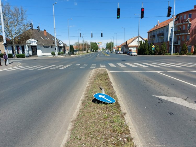 Az Inczédy soron egy balra kanyarodó kamion döntött ki egy kikerülést jelző táblát, amelynek a pótlását a Magyar Közút végzi.