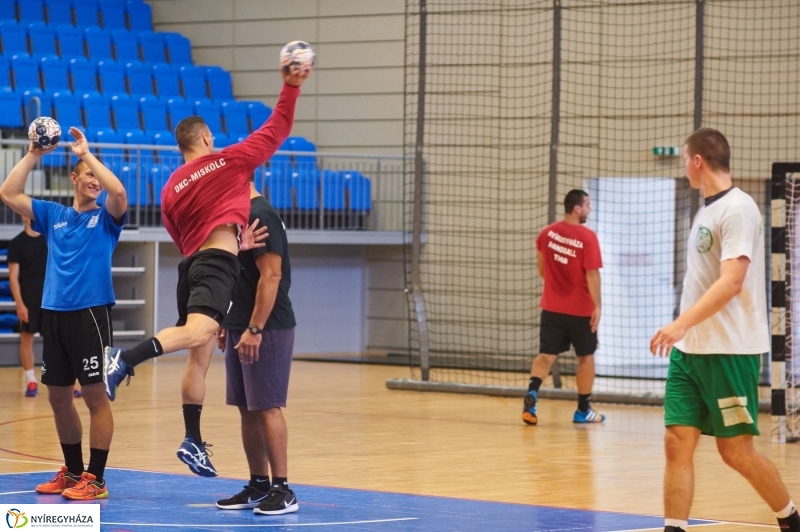 Erőnléti majd labdás edzés szerepelt a nyíregyházi férfi kézilabdások mai programjában. Bécsi János alaposan megdolgoztatta a játékosokat, akik között sok az új arc. A jobbszélső Gidai Máté Szegeden is játszott, a jobbátlövő-irányító Tóth Patrik a PLER-ben kézilabdázott, az irányító Horváczki Márió pedig Algyőn szerepelt. A két beállós közül Priczel Bence tagja volt a strandkézilabda-Eb-n negyedik magyar válogatottnak, míg Székely Nikola a Ferencvárosban nevelkedett. A balátlövő Boda Tamás Dabasról, a szélső Gyimesi Ádám Balmazújvárosból érkezett. Gubó Alex visszatért Nyíregyházára, ő legutóbb Dabason játszott.