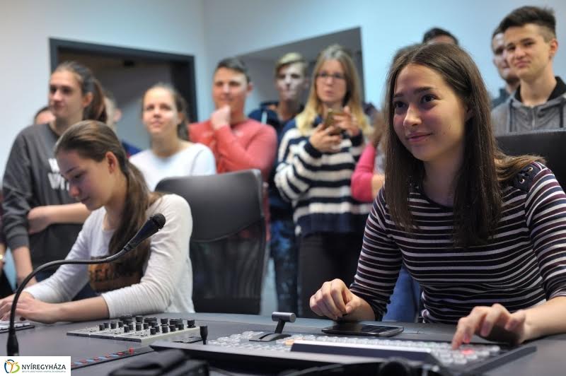 A diákok a történeti ismertetés után birtokba vehették a Nyíregyházi Televízió jelenlegi díszleteit és stúdióját, ahol megismerkedhettek a korszerû digitális kamerákkal és adásrögzítõ berendezésekkel, valamint kipróbálhatták a híradó súgógépét is.