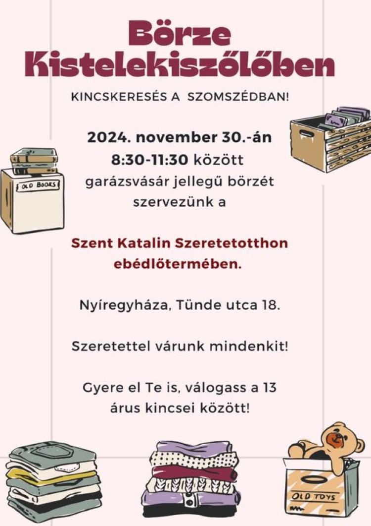 November 30-án 08.30 és 11.30 között garázsvásár jellegűen bababörzét tartanak.