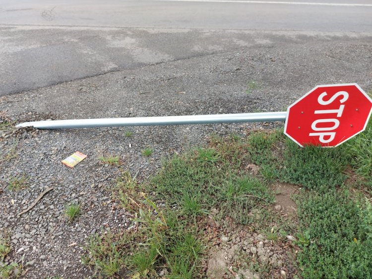 Kitörte a STOP-táblát egy kamionos az Orgona utca és a Simai út kereszteződésénél.