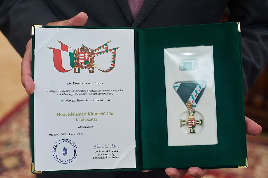 A kitüntetést Nyíregyháza MJV polgármestere november 16-án a Városházán vette át a honvédelmi minisztertől.