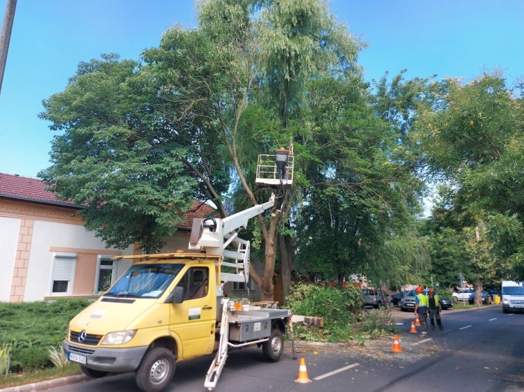 A NYÍRVV munkatársai emelőkosár segítségével végezték a feladatot. A fakivágás idejére korlátozták az érintett útszakasz forgalmát.