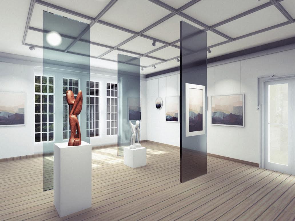 A földszinti nagy terek összenyitása mobil falrendszer segítségével történik meg, amellyel lehetõvé válik nagyobb közönség befogadása is. Ezáltal az épület otthont adhat kiállításoknak, felolvasóesteknek, s kamaraszínházi elõadások helyszínéül szolgálhat. A földszinten helyet kap egy korhûen berendezett kávéház, és megújul a villa déli és keleti oldalán lévõ földszinti terasz is, mely akár egybe is nyitható majd a földszinti belsõ térrel, tovább növelve annak méretét.