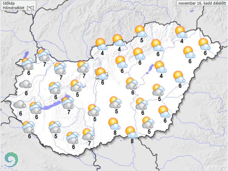 Kedden napközben fokozatosan javulnak a látási viszonyok, a rétegfelhőzet feloszlása után sokfelé kisüt a nap, de a nyugati megyékben lehetnek tartósan borult, párás körzetek is. A Dunántúlon megélénkül a délkeleti szél, amelyet egy-egy erős széllökés is kísérhet.