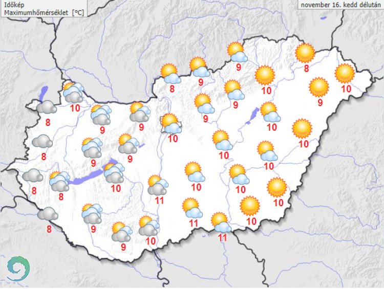 A legmagasabb nappali hőmérséklet többségében 10, 12 fok között valószínű, de a tartósabban felhős részeken pár fokkal hűvösebb lehet. Késő estére -2 és +7 fok közé hűl le a levegő.