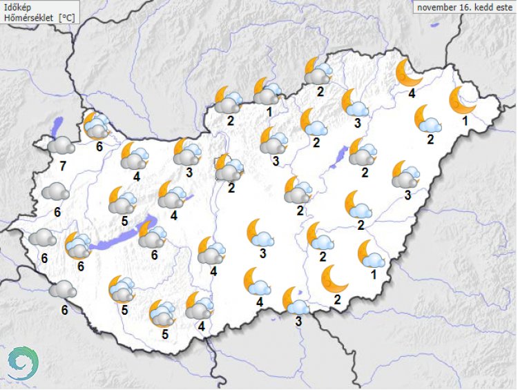 Este ismét többfelé párássá válik a levegő, az ország keleti felén pedig nagyobb területen képződik köd. Eközben nyugaton terjeszkedik a rétegfelhőzet. Számottevő csapadék nem valószínű. A légmozgás többnyire mérsékelt lesz. Hajnalra általában -5 és +4 fok közé hűl le a levegő.