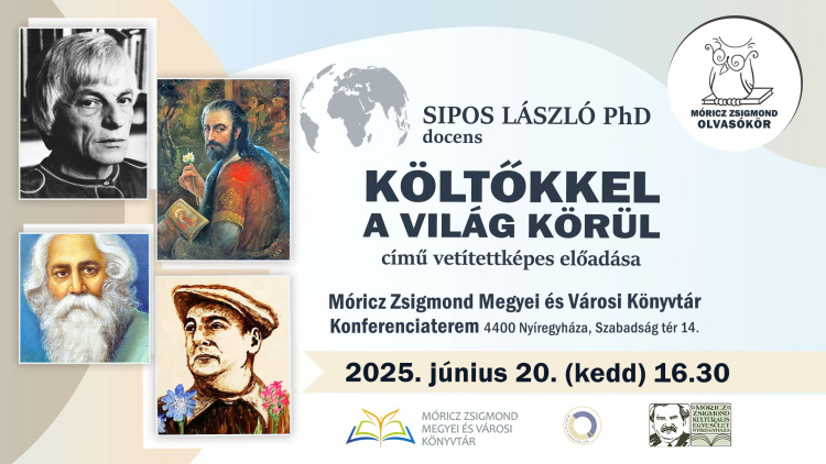 Ez alkalommal Sipos László Phd docens tagtársunk tart vetítettképes előadást „Költőkkel a világ körül” címmel, melynek keretében – versek, zenék fotók és érdekes történetek segítségével – mind az öt kontinensre ellátogathatunk.