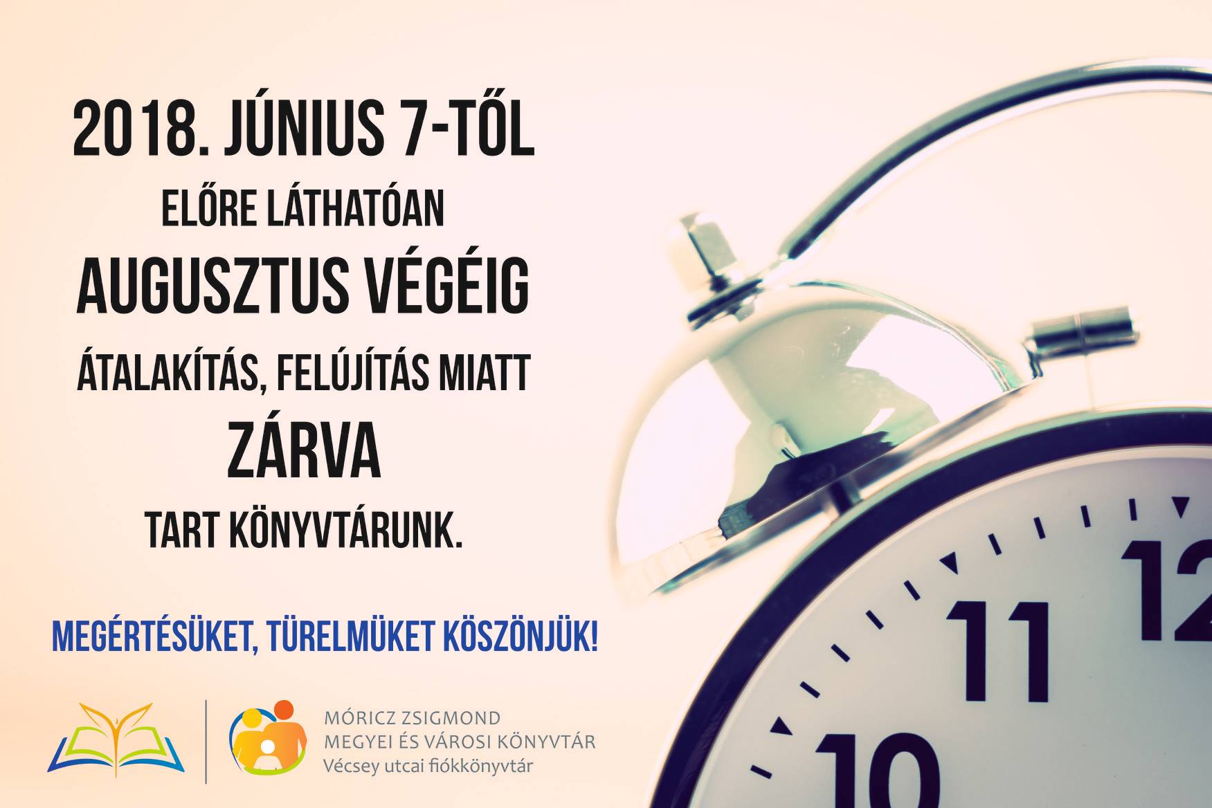 A felújítás idején az olvasóknak nélkülözniük kell a fiókkönyvtár szolgáltatásait, addig a Móricz Zsigmond Megyei és Városi Könyvtár központi könyvtára áll az olvasók rendelkezésére – utána viszont kétszeres forgalomra számítanak!