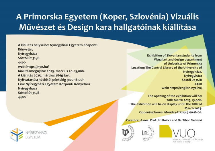 A Nyíregyházi Egyetem Vizuális Kultúra Intézete és a szlovéniai Primorska Egyetem (Koper) hallgatói kiállításának megnyitóját 2025. március 20-án, csütörtökön 15 órakor tartják.