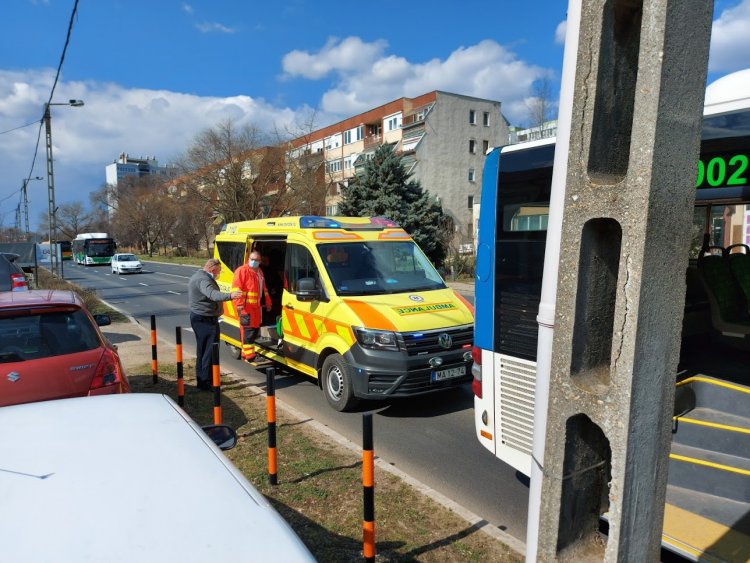 Kórházba szállítottak egy hölgyet, aki elesett a buszon.