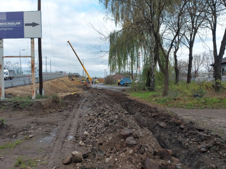 Korlátozzák a Kerék utca forgalmát, több munkagép is dolgozik a helyszínen, építik a támfalat a Tiszavasvári úti felüljáró alatt.