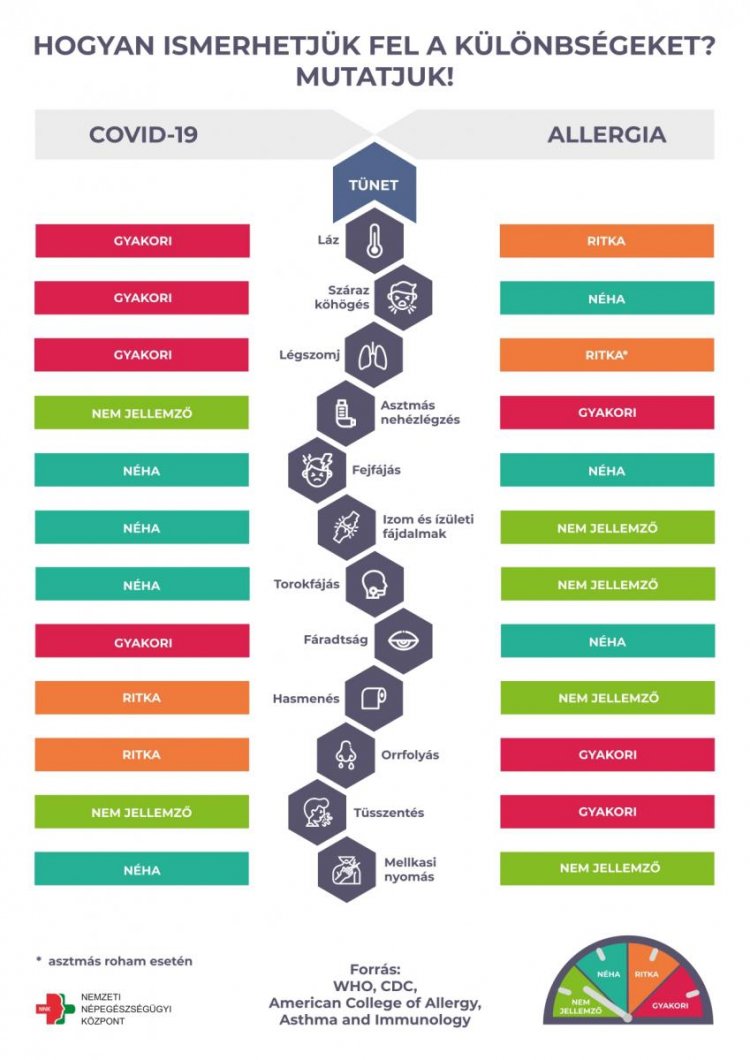 A koronavírus és az allergia tüneteinek beazonosításához tett közzé tájékoztatást a Nemzeti Népegészségügyi Központ.