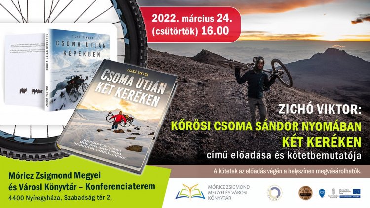Kőrösi Csoma Sándor nyomában két keréken címmel tart előadást és kötetbemutatót Nyíregyházán Zichó Viktor, március 24-én. Az érdeklődőket a Móricz Zsigmond könyvtárba várják.