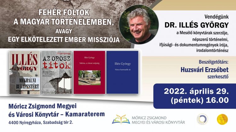 Dr. Illés György író, irodalomtörténész lesz a Móricz Zsigmond Megyei és Városi Könyvtár vendége április 29-én. A kötetbemutató beszélgetésre a könyvtár kamaratermébe várják az irodalombarátokat.