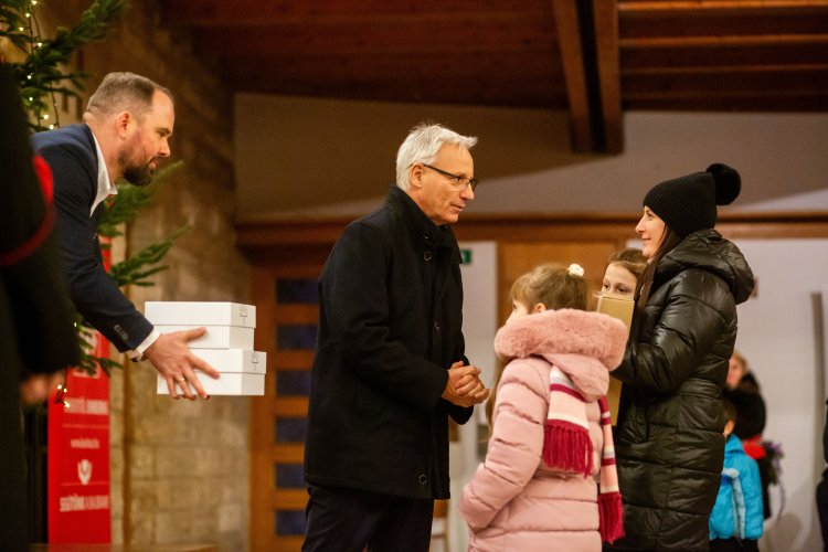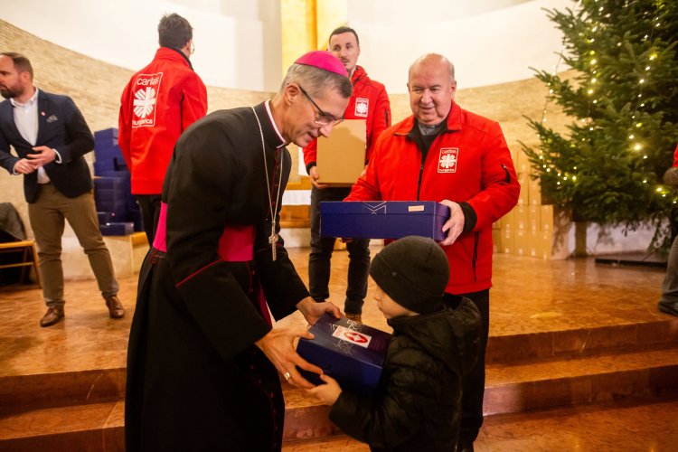 Herczegh Anita, a Katolikus Karitász jószolgálati nagykövete, Soltész Miklós államtitkár úr és a püspök atya személyesen nyújtotta át a több mint száz gyermeknek a játékokat, édességeket, kesztyűt és sapkát tartalmazó angyalbatyukat, és mind a hatvannégy család tartósélelmiszer-csomagot kapott. Ezt követően Haborij Damján atya, a magyarországi ukrán görögkatolikus egyház lelkipásztora és dr. Martos Levente Balázs segédpüspök úr szimbolikus gesztussal élt: közösen vezették a záró imádságot, és közös áldással indították útjukra a jelenlévőket.