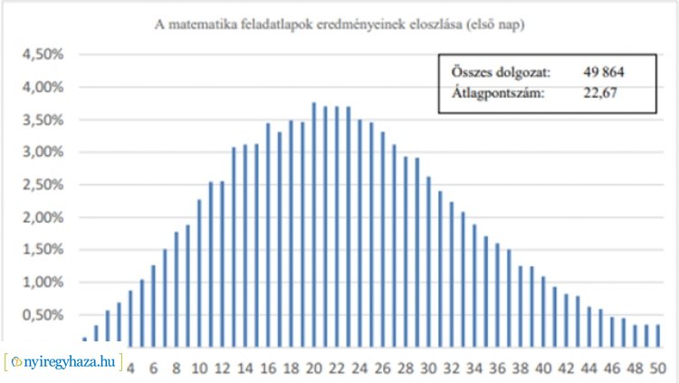 Idén is matematikából születtek gyengébb eredmények: a maximális 50 pontból átlagosan 22,7-ot szereztek a nyolcadikos vizsgázók. Viszont ez az eredmény magasabb a 2019-es 19,5-nál és a két évvel ezelőtti 18,3-as átlagpontszámnál is. Míg matematikából folyamatos javuló tendencia figyelhető meg, addig magyarból évről évre gyengébben teljesítenek a vizsgázók. Az idei átlagpontszám 26,1, ami elmarad a tavalyi 29,9-es átlagpontszámtól, illetve a 2018-as 32,9-es eredménytől.