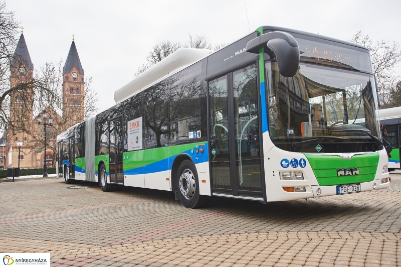 41 új CNG, azaz gázüzemű busz érkezik Nyíregyházára a megyeszékhely több mint 7 milliárd forintos fejlesztésének keretében. A csütörtöki közgyűlés előtt két járművet, egy szóló és egy csuklós buszt mutattak be a képviselőknek és az érdeklődő lakosoknak. Dr. Kovács Ferenc polgármester kiemelte, a hónap végéig mind a 41 busz megérkezik városunkba, majd átadják a járműveket az Észak-magyarországi Közlekedési Központ Zrt.-nek.