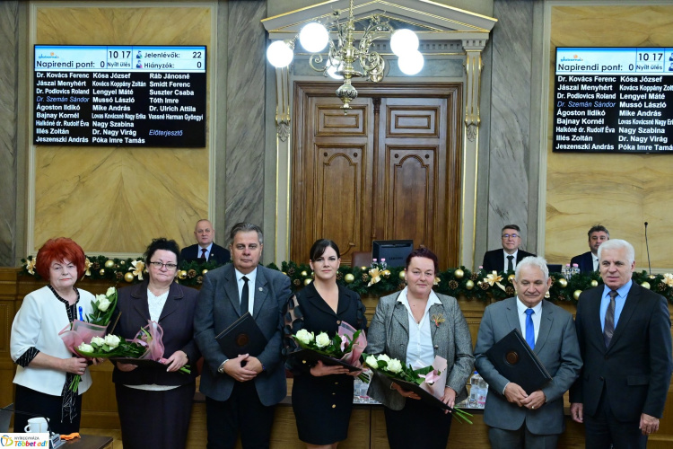 Karácsonyi műsorral kezdődött az év utolsó városi közgyűlése, a Vasvári Pál Gimnázium diákja varázsolt ünnepi hangulatot a városháza Krúdy termébe. Ezt követően elismerések átadásával folytatódott a közgyűlés. Bencs László Emlékérmet kapott Urbán Teréz és Telepóczkiné Farkas Márta, a szakterületükön végzett kimagasló munkájuk elismeréseként. Urbán Teréz pedagógus sokat foglalkozott Nyíregyháza történetével és hosszú évek óta városvédő egyesület fontos tagja. Telepóczkiné Farkas Márta építészmérnök, nyugdíjba vonulása előtt többek között a Nyíregyházi Főiskola óraadója is volt, 2012-től dolgozik az Idősügyi Tanácsban, 2020-tól annak titkáraként sokat tesz a város szépkorú polgáraiért. További hat fő kapott Bencs László Emléklapot: Hegedűsné Balogh Anna óvodapedagógus, Kovács Istvánné, a Nyíregyházi ILCO Egyesület vezetője, Mészáros Józsefné tojásfestő és csuhékészítő, dr. Ráczné Hekman Erzsébet énekművész, Dohanics László, a Kállay Gyűjtemény vezetője és Martinovszky István mérnök tanár és zenész.