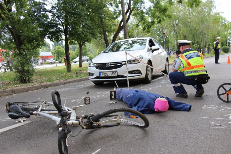Sokkoló látvány fogadta a járókelőket délelőtt Nyíregyházán, a Korányi Frigyes úton. Ezúttal ez volt a rendőrök célja. Gyakori, hogy a közlekedési balesetek bekövetkezésében szerepet játszik az alkoholfogyasztás. Ilyen halálos kimenetelű, tragikus baleset helyszíne volt a rendezvényhez választott útszakasz, ahol egy kerékpáros vesztette életét a közelmúltban. Beállított volt a helyszín - egy személygépkocsi, a sérült kerékpárost idéző földön fekvő bábu, és egy megrongálódott kerékpár-, ami hátborzongatóan mutatta be azt, hogy mi marad egy valóságos baleset után.