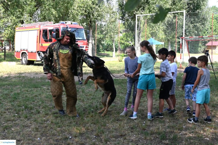 – Nekem nagyon tetszik, mert nagyon jó és érdekes. Újdonság számomra, hogy úgymond csatáznak az emberek a kutyákkal, nagyon érdekes – mondta Kecskés Iván táborozó. A Gárdonyi Géza Tagintézmény 11 éves tanulója azt is elárulta, azért különleges számára ez a program, mert ő is rendőr szeretne lenni.