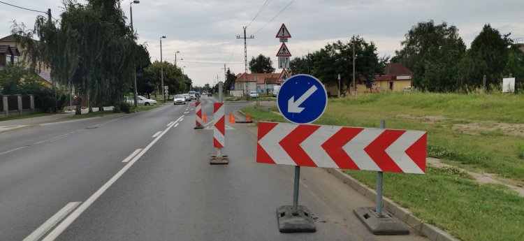 A Pitypang utcánál közmű-helyreállítási munkálatok végeznek, váltakozó irányban halad a forgalom.