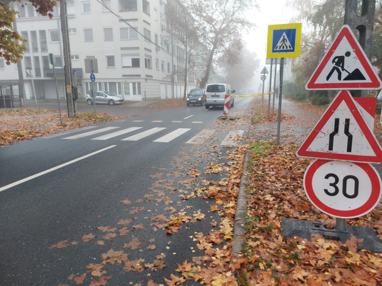 A munkálatok ideje alatt forgalomkorlátozás van érvényben. A kihelyezett táblák 30 km/órás sebességkorlátozásra, útszűkületre és úton folyó munkára figyelmeztetik az autósokat.