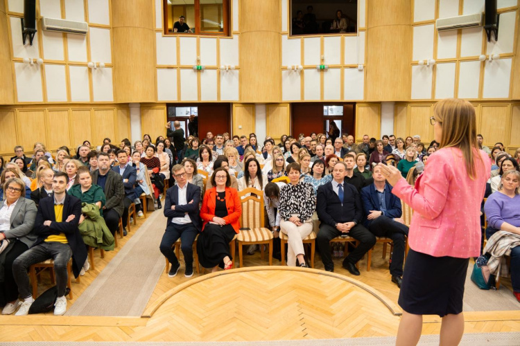 Teljesen megtelt a Vikár hangversenyterme, sőt pótszékekre is szükség volt, akkora volt az érdeklődés Dr. Balatoni Katalin köznevelési fóruma iránt. A pedagógiai innovációk előmozdításáért és a családbarát oktatási környezet erősítéséért felelős miniszterelnöki biztos országjárásának huszadik állomásán többek között a digitalizáció, az infrastrukturális fejlesztések, az ösztöndíjprogramok és az életpálya modell lehetőségek is szóba kerültek.