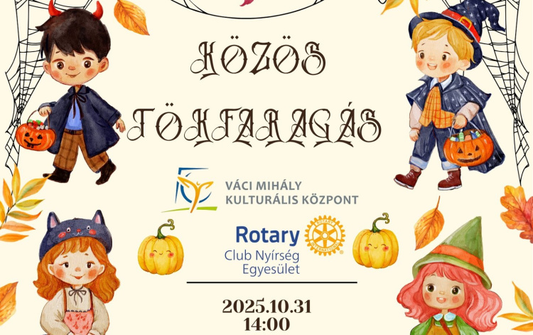 A Rotary Club Nyírség és a Váci Mihály Kulturális Központ szeretettel vár minden érdeklődőt 2025. október 31-én (pénteken) 14:00 órától egy hangulatos, őszi közösségi programra – Közös Tökfaragásra!
