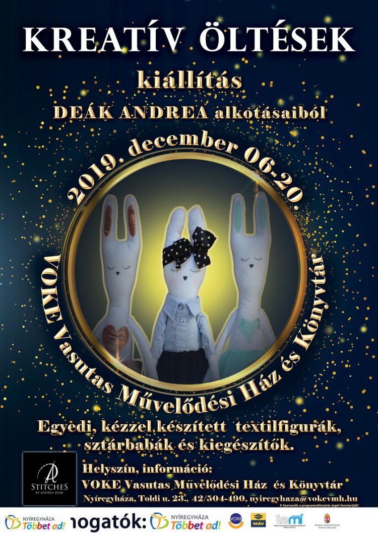 Kreatív öltések - kiállítás Deák Andrea alkotásaiból a Vasutas Művelődési Házban