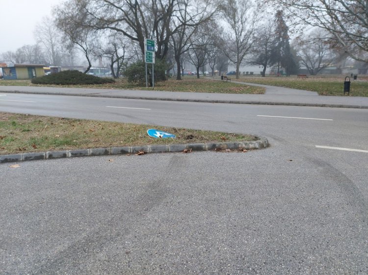 Ismét megrongáltak több KRESZ-táblát is az Arany János utcán, az egyiken például egy kamion is áthajtott.