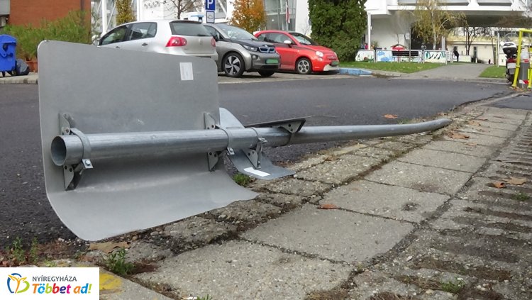 Kitörtek egy KRESZ-táblát Nyíregyházán, a Szabadság téren.