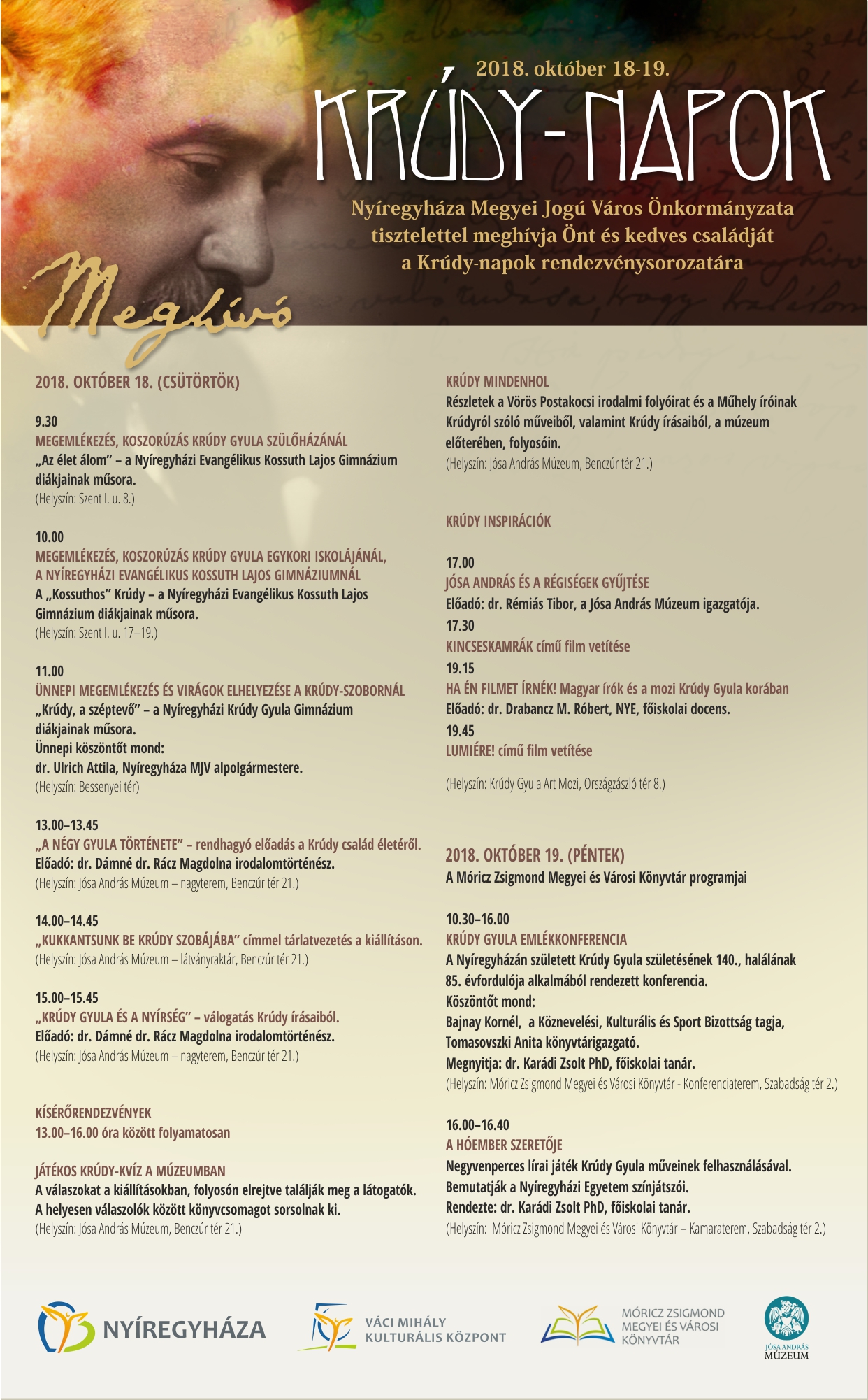 Krúdy-napok 2018 - rendezvénysorozat Nyíregyházán