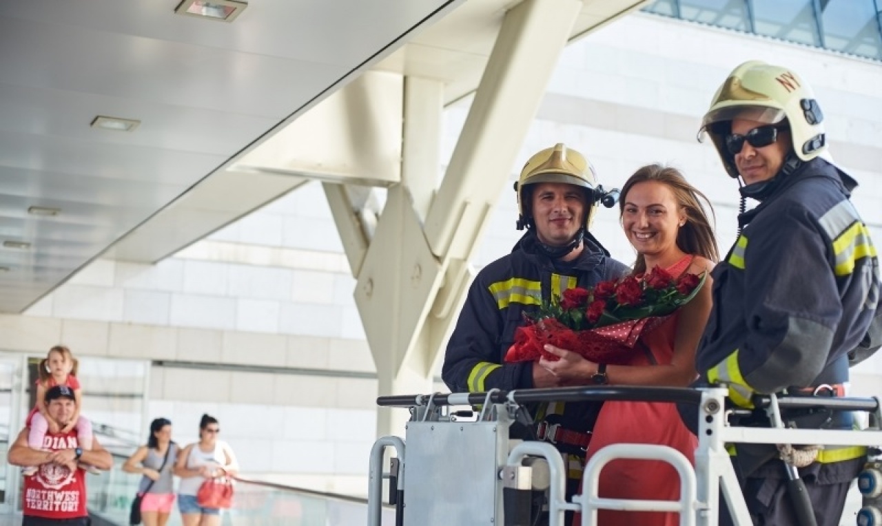 Gábor egy tűzoltófecskendővel érkezett menyasszonyához, Nyíregyházán, a sétáló utcában lévő üzletközponthoz, feljutását pedig egy különleges szer, a gépezetes tolólétra segítette a első emeleten lévő folyosóhoz. A nem mindennapi leánykérésre a tűzoltót közvetlen bajtársai is elkísérték. A virágcsokorral és gyűrűvel érkező tűzoltónak pedig igent mondott választott párja, Mariann már nagyon várta ezt a pillanatot.