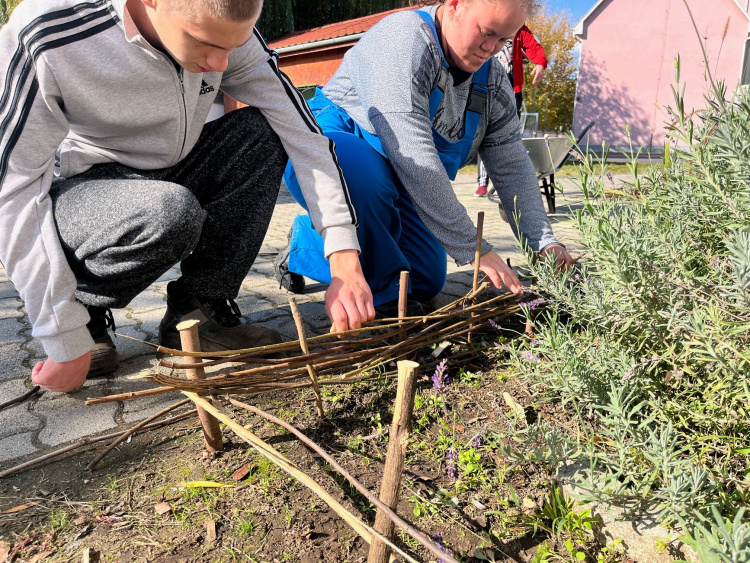A gondosan megtervezett és kialakított levendulás az iskola udvarán kapott helyet. A télre előkészített, visszavágott növényeket természetes hatású vesszőkerítés övezi, amely elkülöníti az ágyást az iskolakert többi részétől. A projekt nem csupán díszítőelem, hanem mintakert is, amely a tanulók számára gyakorlati lehetőséget biztosít a fenntartható kertgazdálkodás megismerésére.