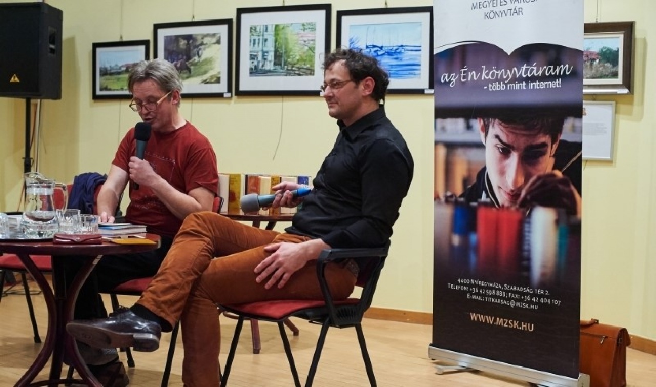 Kürti László vendége Háy János író-költő volt a Móricz Zsigmond Könyvtárban