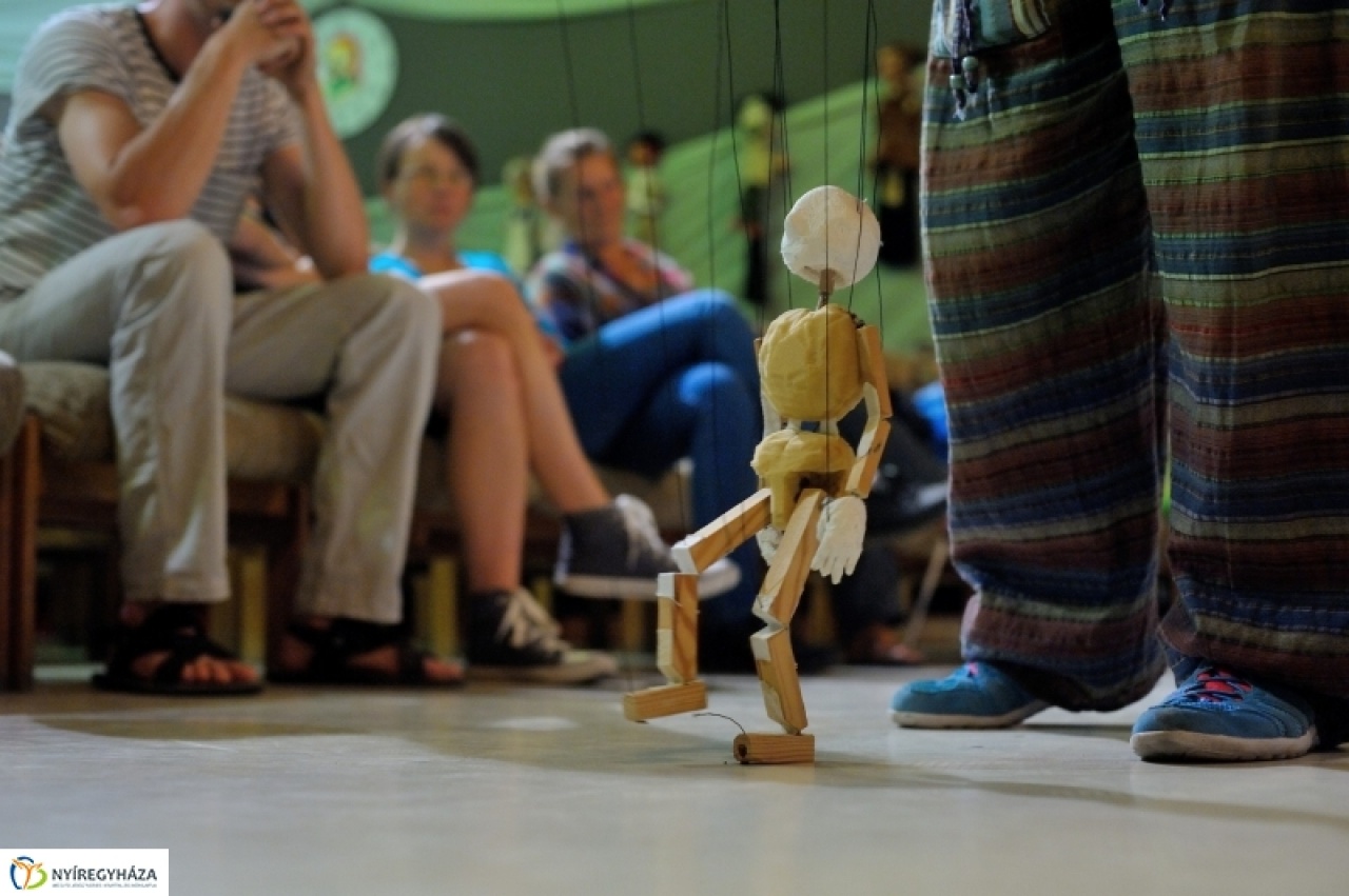 A nemzetközi viszonylatban is híres művész három napon át oktatja nyíregyházi kollégáit a zsinóros bábok mozgatásának tudományára. A Burattino Bábszínház tagjai a kesztyűbábokat már biztonságosan mozgatják. Hétről hétre több száz gyereket kápráztatnak el történeteikkel. A marionettfigurákkal most ismerkedtek meg.