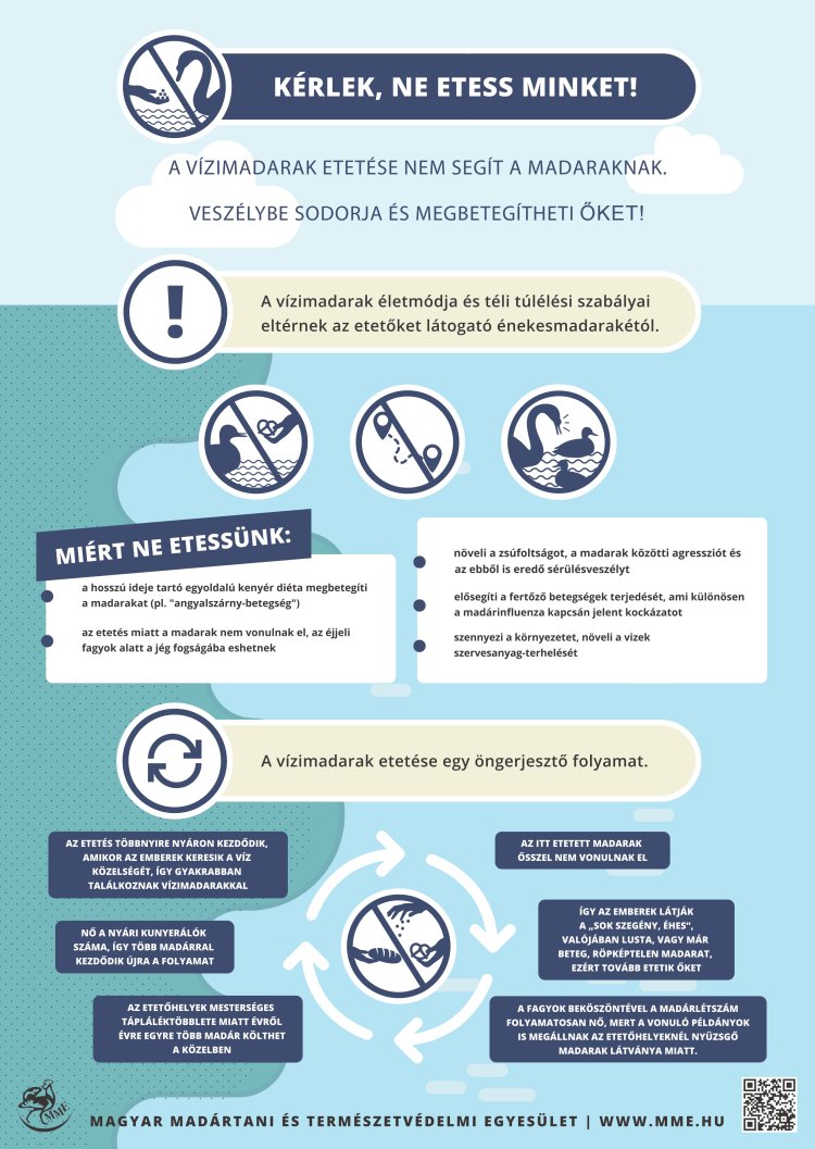 Etetésük ráadásul tömegesen sodorja veszélybe és betegíti meg az állatokat, ami ellen világszerte küzdenek a hatóságok és a természetvédelmi szervezetek. Ezért a Magyar Madártani és Természetvédelmi Egyesület (MME) arra kéri a víz mellett sétálókat, strandolókat, kirándulókat és nyaralókat, hogy sehol, semmivel, kacsaetető automatákból se etessék a vízimadarakat!